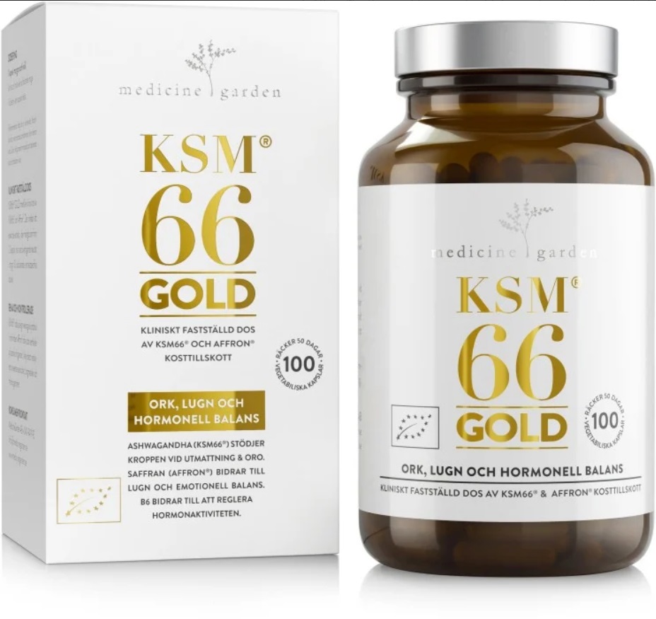 KSM66 GOLD innehåller två av världens mest väldokumenteradeväxtextrakt, KSM66® och Affron®(saffran) + B6. En kombination som traditionelltanvänds vid långvarig stress, utmattning, oro, hormonell obalans och minskadsexuell lust.
