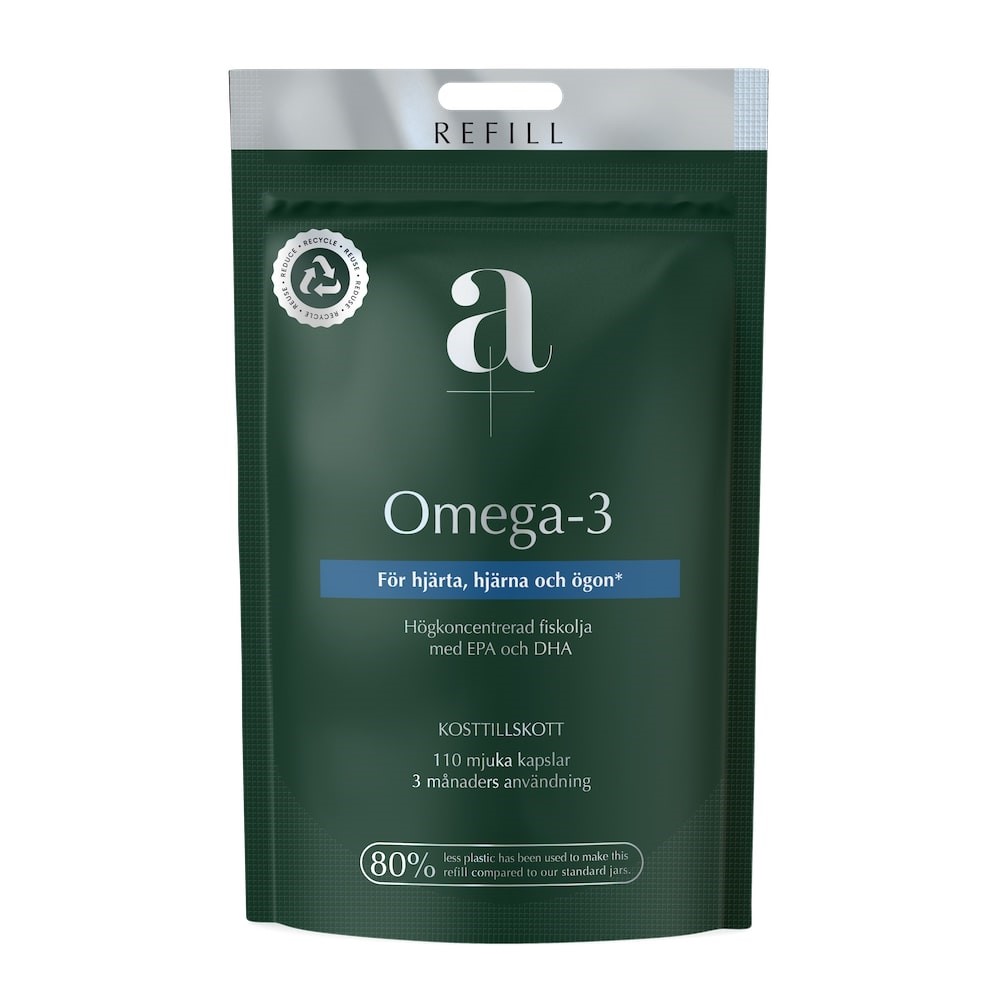 A+ Omega-3 är ett kosttillskott med högkoncentrerad fiskolja som innehåller de viktiga fettsyrorna DHA och EPA och i en större dos än standardfiskoljor på marknaden. Dessa fettsyror är essentiella vilket innebär att de måste tillföras via kosten, framför allt i form av fet fisk. A+ Omega 3 har sin tillverkning i Norge och fisken som används i fiskoljan är Friend of the Sea certifierad vilket styrker dess ursprung och hållbarhet.