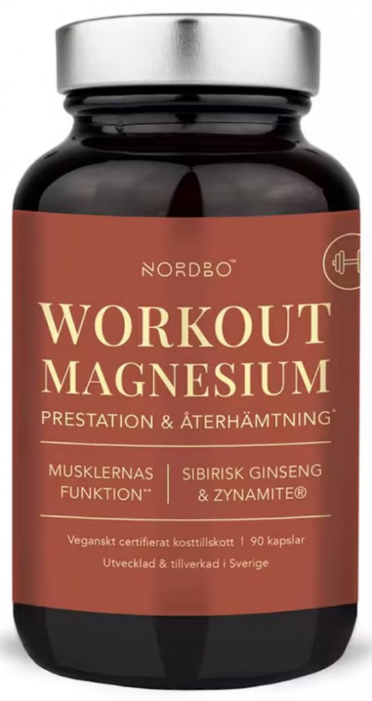NORDBO Workout Magnesium är ett avancerat kosttillskott framtaget för att stödja fysisk prestation, återhämtning och minska trötthet. Kombinationen av fem aktiva ingredienser – magnesiummalat, magnesiumbisglycinat, sibirisk ginseng, Zynamite® och Digezyme® – ger ett komplett stöd inför träning och under återhämtningsfasen.