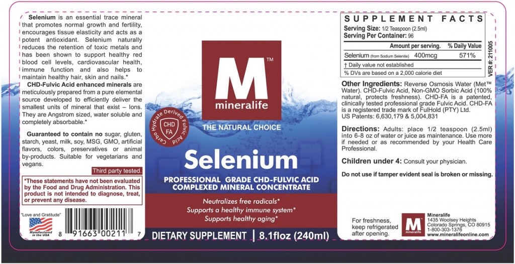 Mineralife Selenium concentrate is formulated using our patent-pending MET water, a multi-step purified energy enhanced water that helps activate minerals into their electronically charged ionic state for maximum benefit. It is also enriched with CHD-Fulvic Acid to enhance absorption and overall well-being.