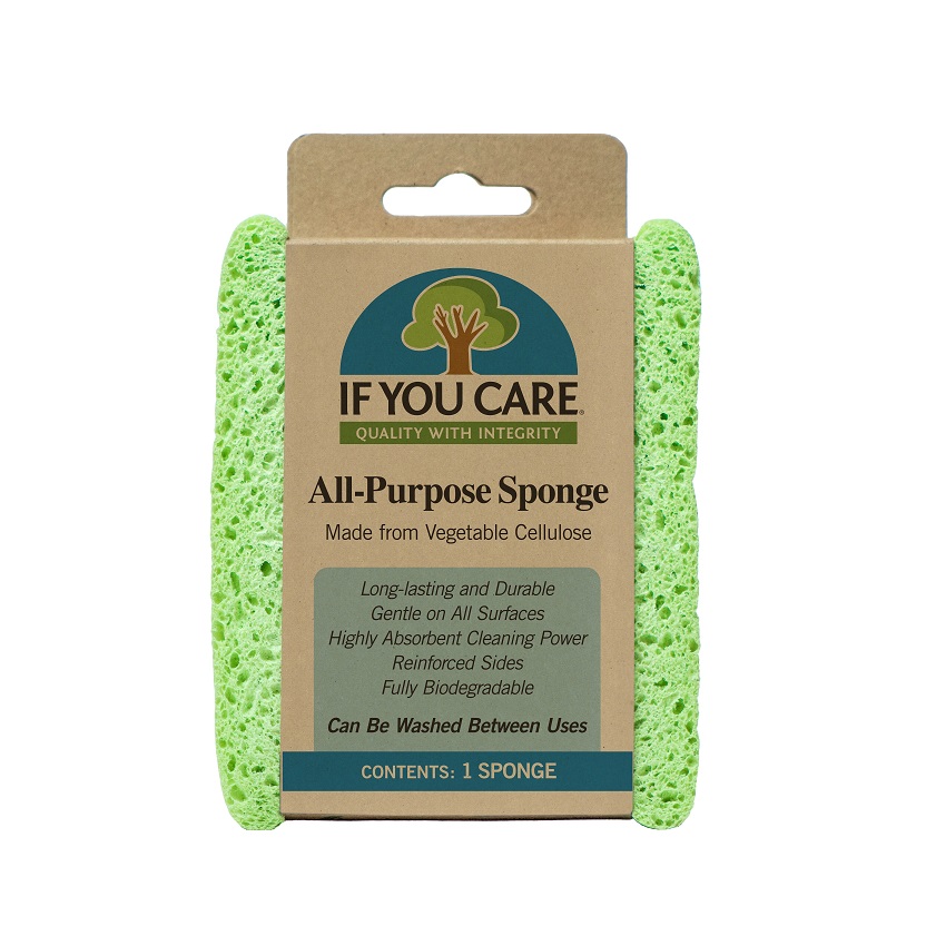If You Care All-Purpose Sponge är en biologiskt nedbrytbar tvättsvamp tillverkad helt av vegetabilisk cellulosa. Tvättsvampen kan absorbera vatten motsvarande 20 gånger sin egen vikt och är mycket skonsam mot känsliga ytor. Den passar utmärkt för handdisk, rengöring i kök och badrum, biltvätt med mera. Ytterförpackningen är tryckt med vegetabiliskt bläck och tillverkad av återvunnen kartong som kan återvinnas igen.