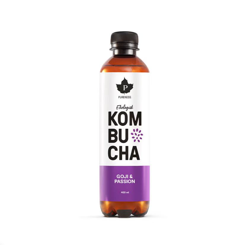 Kombucha Goji & Passionsfrukt är en fräsch och lätt kolsyrad dryck som bryggs på grönt te, kombuchakultur och ekologiskt rörsocker. Den är berikad med naturlig arom från passionsfrukt och gojibär som ger en fruktig och frisk smak.