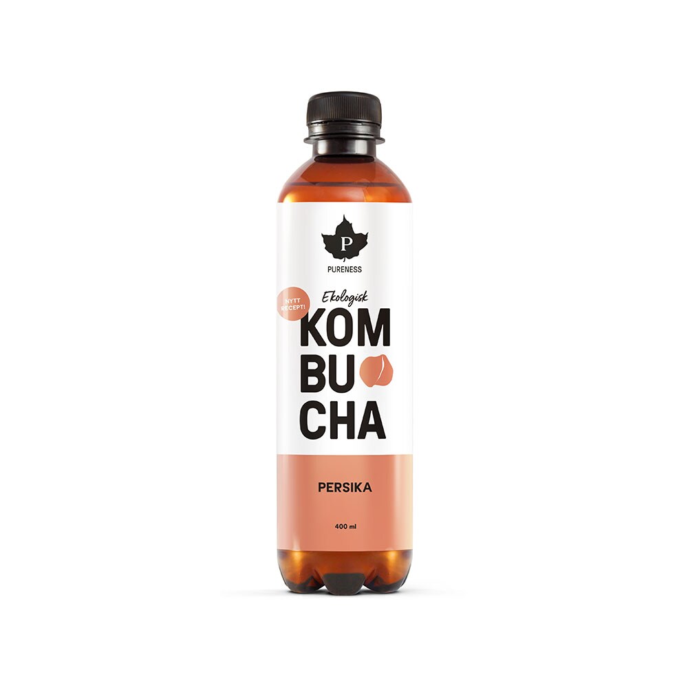 Mineralvatten, ekologiskt rörsocker, ekologisk kombuchakultur, koldioxid, ekologiskt grönt te, naturlig persika arom.