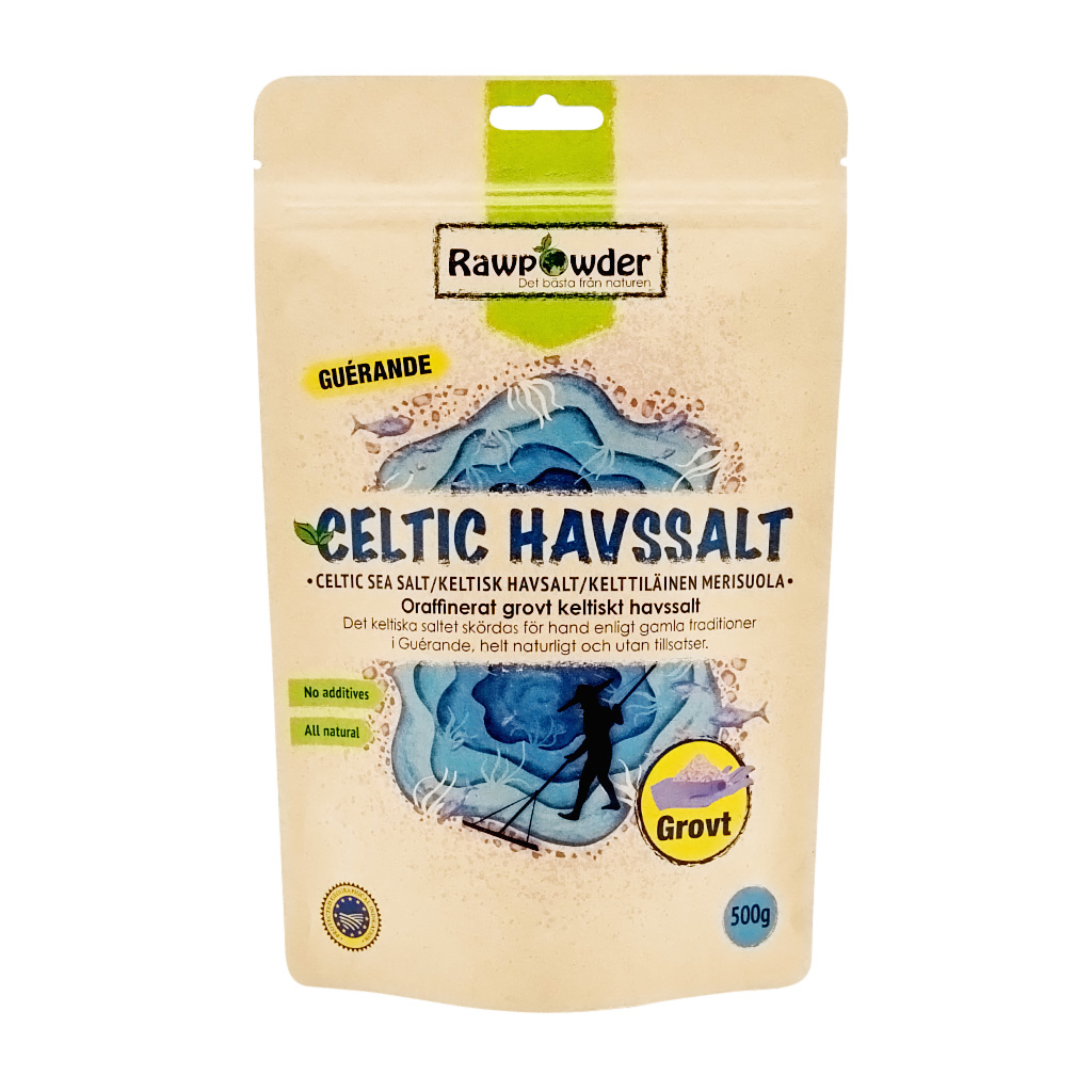 Det keltiska mineralrika saltet skördas för hand enligt gamla traditioner. Produktionen sker med beprövade hantverksmetoder i Guérande, Frankrike. Det grovkorniga keltiska havssaltet är oblekt, oraffinerat, helt naturligt och utan tillsatser därav dess naturliga gråa färg.