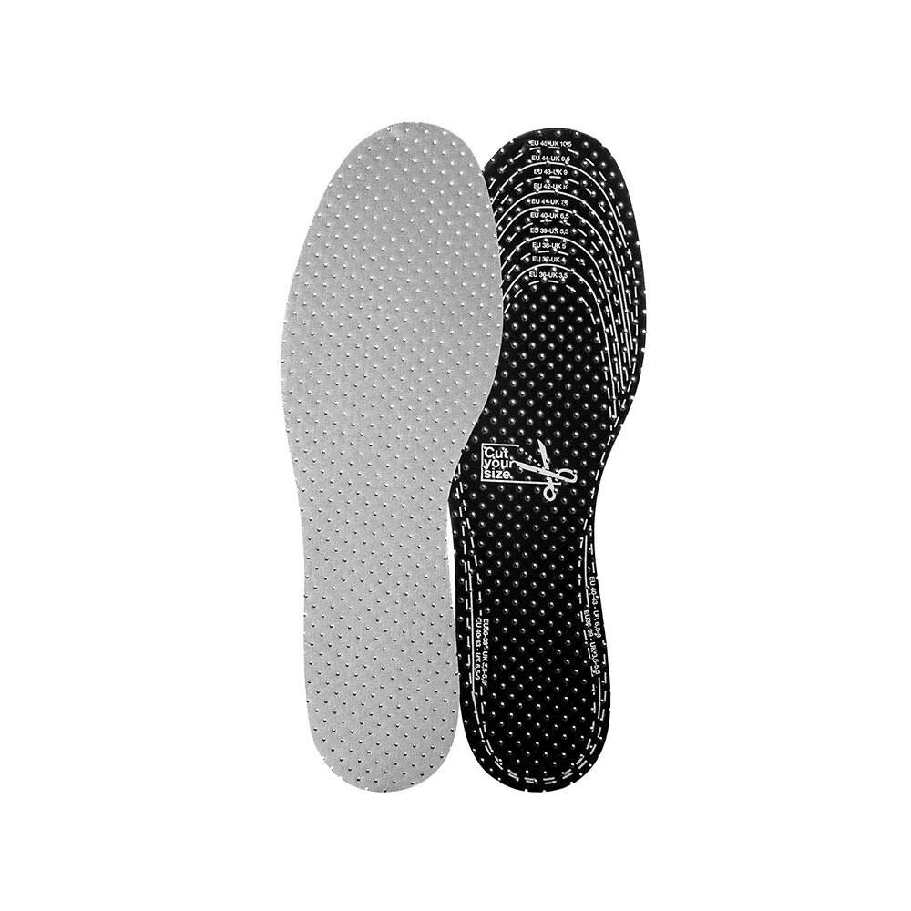Placera sulan i skon med kolytan uppåt. Kan användas i alla typer av skor och klipps enkelt till önskad storlek. Lufta sulan efter användning.