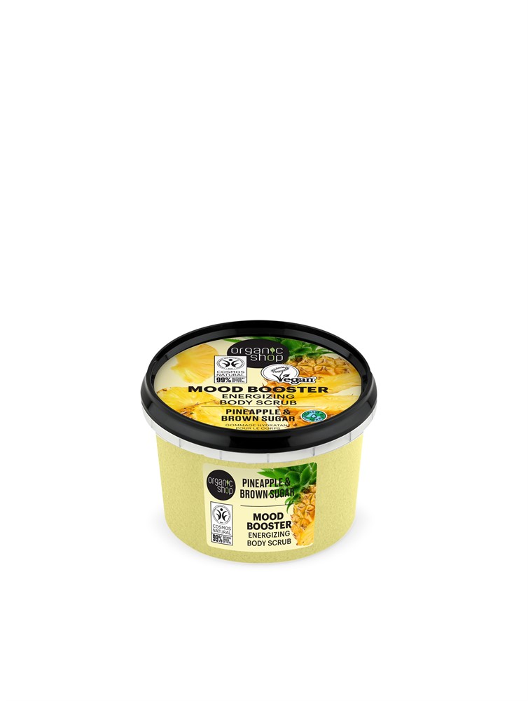 Organic Shops Kroppsskrubb Ananas & Brown Sugar med tropisk ananas och farinsocker är en energigivande kroppsskrubb berikad med ekologiskt ananasextrakt. Basen är farinsocker, en underbar naturlig exfolierare som avlägsnar hudceller och lämnar huden silkeslen och smidig. Denna skrubb ger en sensorisk fest för sinnena och effektiv rengöring, samtidigt som den tillför fukt. En skön produkt för en välgörande hemmaspa ritual.