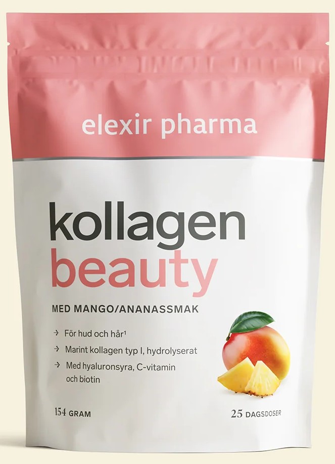 Kollagen Beauty är ett smakfullt kollagenpulver utvecklat för dig som vill stödja hudens struktur och kroppens naturliga kollagenbildning som en del av din dagliga rutin. Produkten innehåller 5 gram hydrolyserat kollagen typ I per portion, kombinerat med hyaluronsyra, C-vitamin och biotin – näringsämnen som tillsammans samverkar för hudens normala funktion.