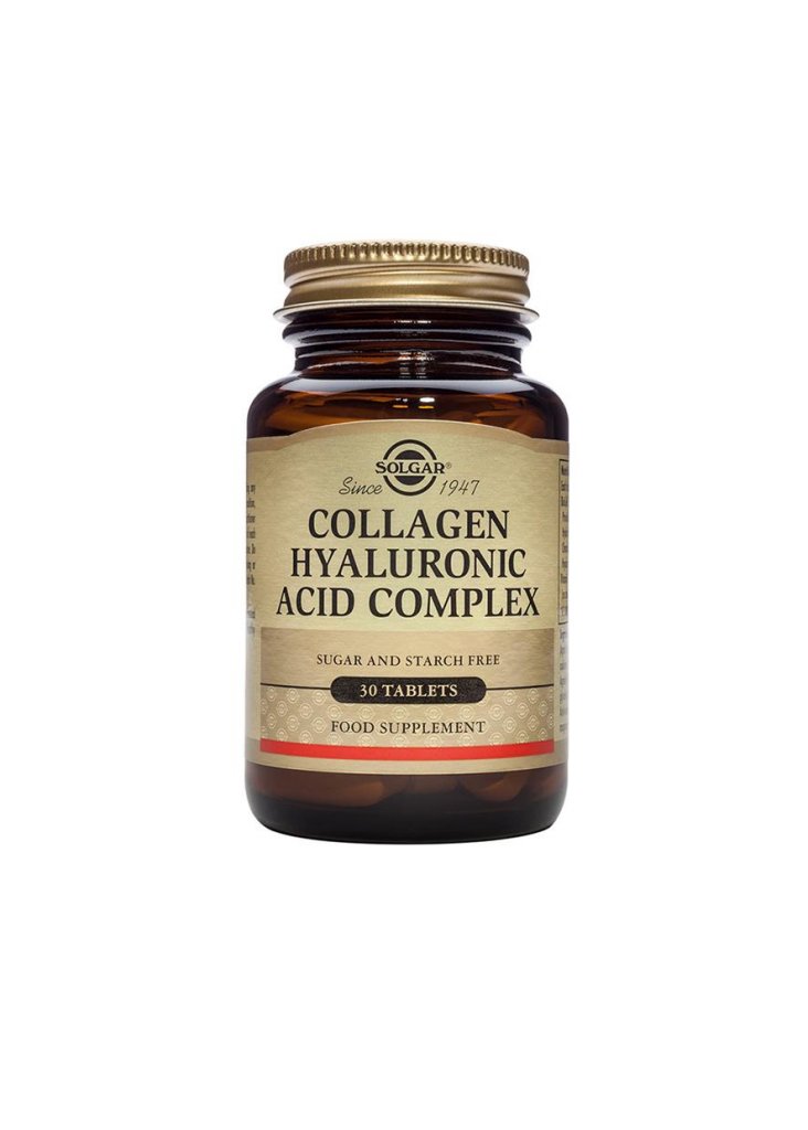 Med alltmer hektiska livsstilar och andra miljömässiga faktorer behöver även den mest noggranna av oss ibland lite förstärkning för att bemästra tecken på ett förtida åldrande, som rynkor och trött hud. Solgar® vet att bra näring är grunden till en vacker hud. Det är därför vi har skapat vårt Collagen Hyaluronic Acid Complex som ger näring åt din hud inifrån. Hyaluronsyra (hyaluronan) är ett ämne som finns i nästan alla kroppens celler. I huden kan hyaluronsyran påverka så att det finns optimala nivåer av vatten i läderhuden. Med åldern minskar hyaluronsyran i huden. Den åldersrelaterade förlusten av hyaluronsyra kan vara en bidragande faktor till fina linjer och att huden inte längre är så fyllig. Kollagen är ett viktigt protein som spelar en viktig roll för hudens hälsa. Det både skyddar och stöder hudens läkning, och ökar på så sätt hudens fasthet och skyddar från sprickor, vilket innebär att fina linjer och rynkor slätas ut. Extra C-vitamin bidrar till skyddet av celler mot oxidativ stress.