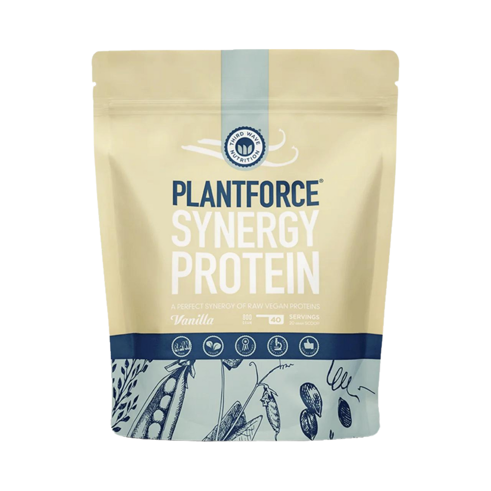 Plantforce Synergy Protein har en perfekt synergi av lågallergener och kompletterande RAW växtbaserade proteiner. Finns i varianterna naturell, vanilj, bär och choklad. Vanilj- och chokladvarianterna är framställda med 100% naturlig smak enligt de strikta EU-reglerna och sötas naturligt med steviolglykosider extraherade från steviaplantens blad. Alla produkter är fria från alla allergener som mjölk, soja, vete och gluten och tolereras av känsliga individer tack vare sin allergivänliga natur. Produkten är lämplig för dem som äter vegan- eller vegetarisk kost.