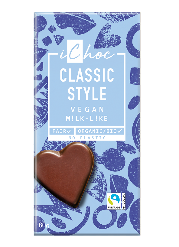 iChoc's Classic Style Vegan är en ren, krämig vegansk choklad med bovete, mandelolja, bourbonvanilj och havssalt. Perfekt som den är eller för att användas i bakning. Nu med Fairtrade-certifierad kakao och lokalt odlat betsocker från Tyskland istället för rörsocker från Sydamerika som sparar tusentals kilometer av transport! Plastfri förpackning.